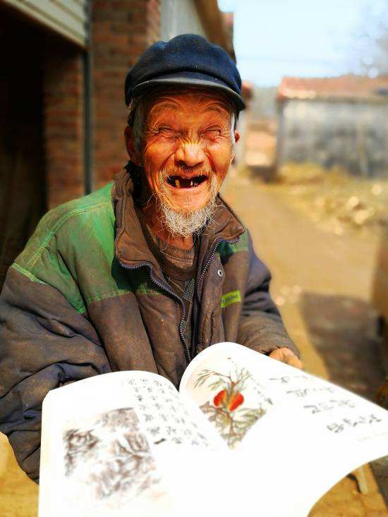 2017年3月31日,山东济南济阳。老汉一生喜爱画画,当他的画在县里展出并出书时,老汉手捧新书喜形于色。刘子平 摄