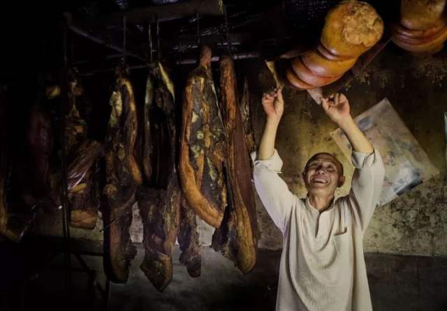 2017年5月29日,湖北恩施。新塘乡木栗园村一位老人制作的土家腊肉。谭维 摄