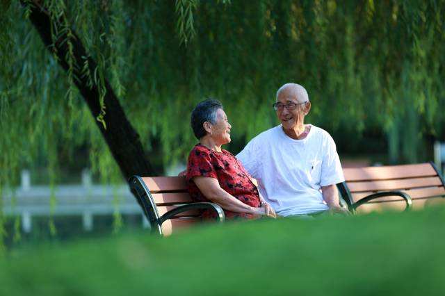 2017年9月28日,山东邹平。市民公园里,两位老人正惬意地享受着午后的阳光,满脸幸福。袭龙生 摄