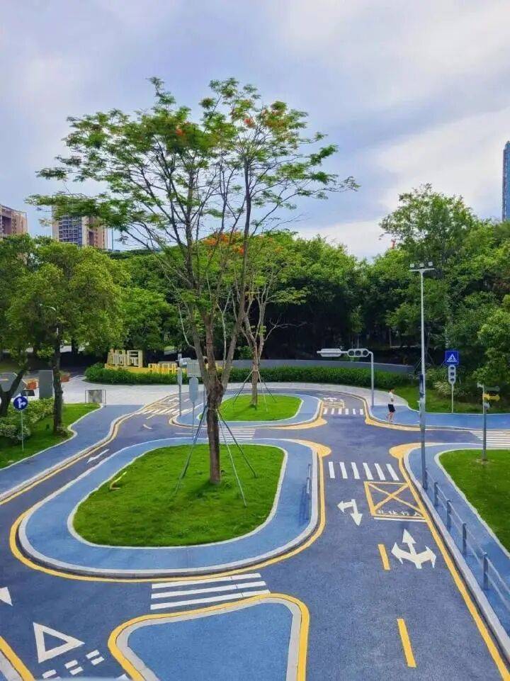 如果你路过一个地铁口旁边,会不时发现多了个小公园,放了滑梯和几张长椅,下午有家长带孩子在那儿玩。像这样突然出现的“口袋公园”这几年不少,比如深云立交桥下就有一片空间,变成了公园,里面还有趣味迷你版的红绿灯、斑马线、公交车站,很适合带小朋友玩。龙珠大道旁边也有一个,特意加了无障碍坡道,把公交站和休憩区连在了一起。